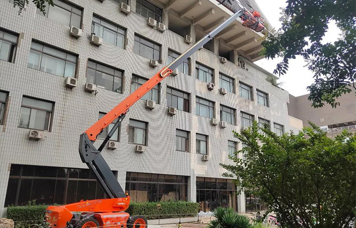 17.5米伸縮臂登高車酒店開業外墻高空作… -